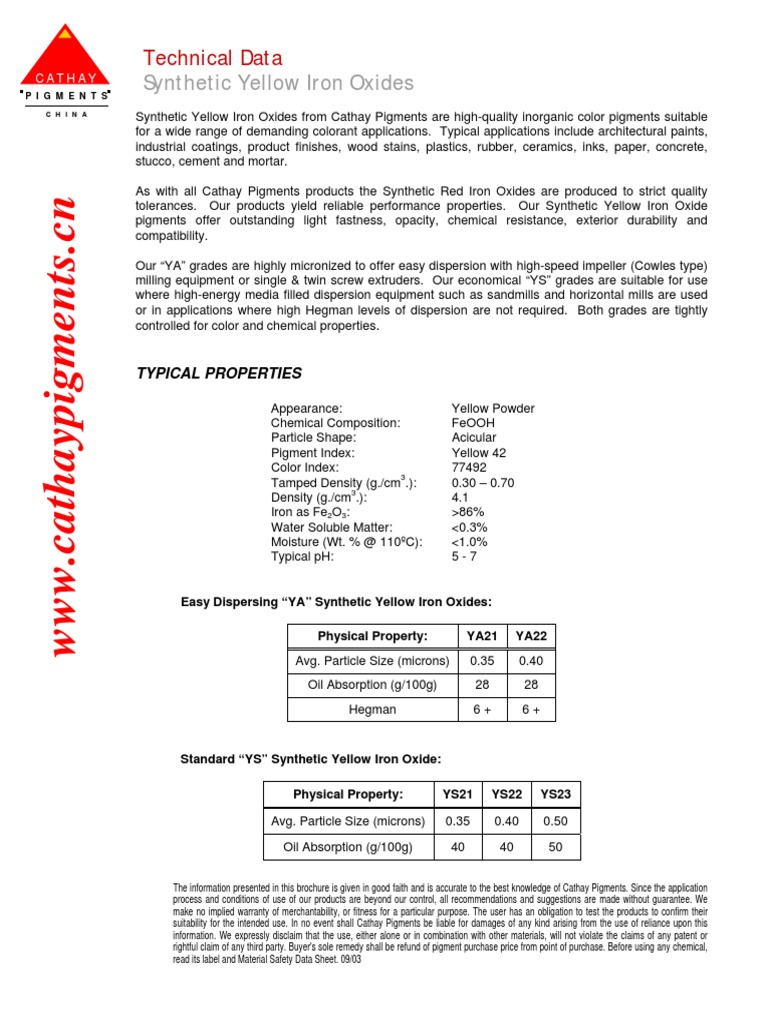 Yellow Oxide Ya 22e Pdf Pdf Pigment Implied Warranty